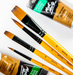 A high-quality taklon brush set featuring smooth wooden handles and durable black ferrules, designed to provide consistent control and smooth paint application when working with acrylics.