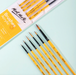 This set includes Round 6, Flat 5, Flat 9, and Bright 7 brushes, covering detailing, broad strokes, sharp edges, and colour blocking.